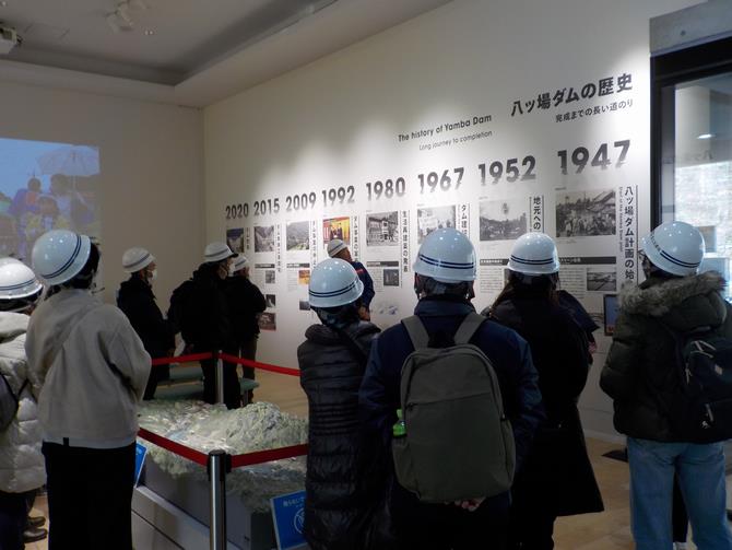 続いて、ダム資料館では、会議室での説明を踏まえ、八ッ場ダムの歴史や背景を図表などを用いて視覚的に詳しく教えていただきました。