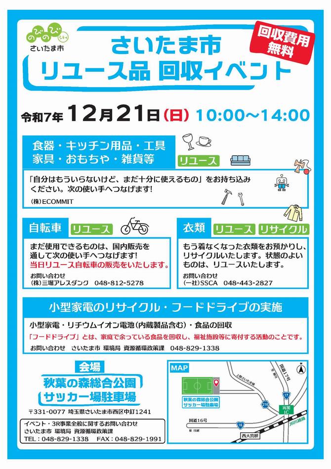 ※当日回収したものはイベント終了後、各業者にて点検・整備等を行い、リユース又はリサイクルされます。当日その場で他の方にお渡しすることはできません。