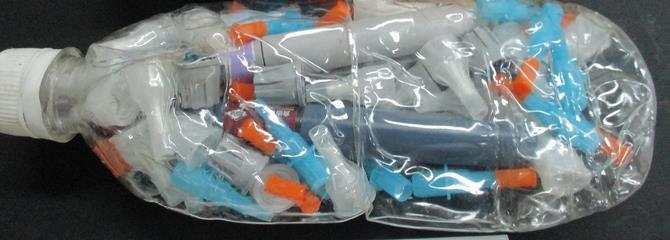 写真のとおり、在宅医療で使用したと思われる注射針をペットボトルに入れて、ごみとして収集所に出されていることを確認しています。