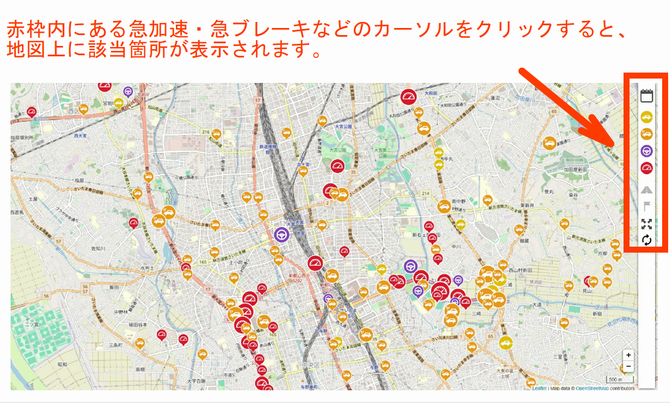 参加した皆様の運転データ(令和7年11月)をもとに「さいたま市エコドライブコンテスト」の成果として、「交通安全マップ」をあいおいニッセイ同和損害保険株式会社が作成し、提供して頂いたものです。