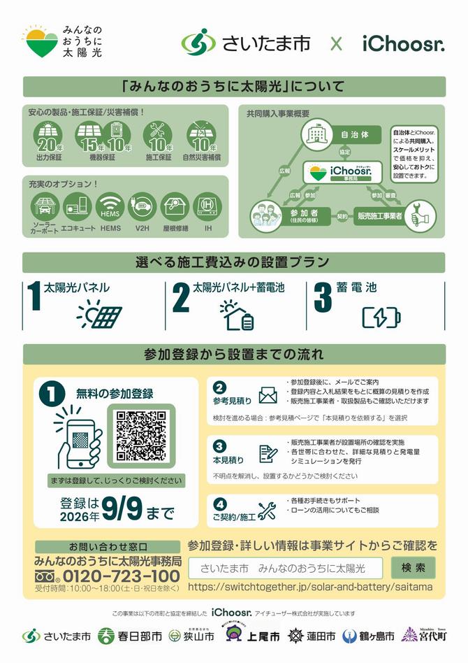 販売施工事業者の選定は、さいたま市と協定を締結したアイチューザー株式会社が実施します。
