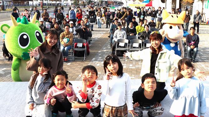 (クイズ参加者・ステージ観覧者の皆様の記念撮影写真)(志田音々さんのコメント)