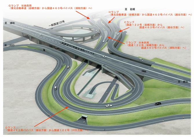 一般国道463号越谷浦和バイパスの鶴巻ランプは、さいたま市緑区大門地内外において、東北自動車道、国道122号、国道463号バイパスを立体交差により接続し、相互を連結する道路です。