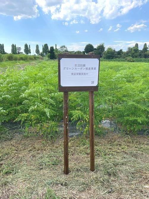 実証実験対象地には「見沼田圃グリーンカーボン推進事業 実証実験実施中」の看板が設置してあります(写真2参照)。