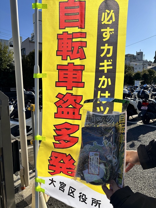 これまでに「特殊詐欺」被害防止対策として、市民への啓発セミナーや街頭啓発活動を実施しているほか、「自転車盗」被害防止対策として、大宮区役所等と協力し、駅前駐輪場や商業施設などで街頭啓発活動(ツー・ロックキャンペーン)を実施しています。