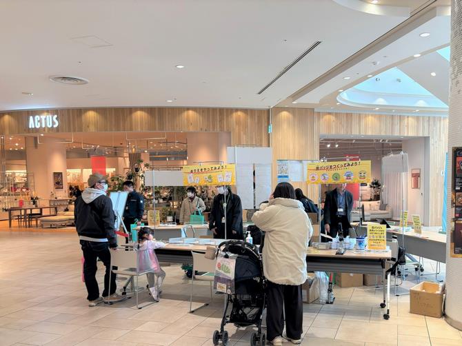 コクーンシティ(コクーン2おもてなしプラザ)の会場では、関係機関・事業者ごとにブース(缶バッジ製作、ぬりえ、特殊詐欺被害防止クイズ、スマホ相談コーナー、固定電話の国際電話利用休止申請コーナー、見守りサービス情報提供コーナー)を設け、コクーンシティを訪れた家族連れの方々を中心に、特殊詐欺被害防止についてご理解をいただきながら、楽しくご参加いただきました。