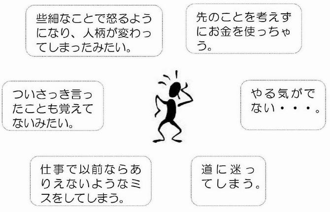 ・記憶障害・・・(例)昨日どこに行ったか覚えていない。仕事が覚えられない。