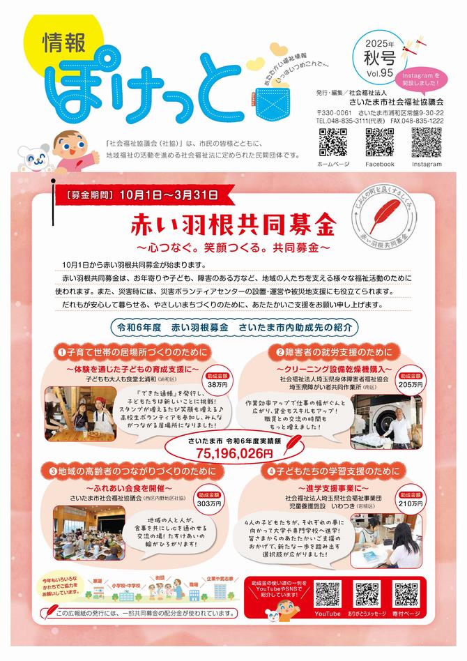 さいたま市社会福祉協議会では、同協議会や関係団体の活動、講座情報等を掲載した広報紙「情報ぽけっと」2025年秋号を発行しました。