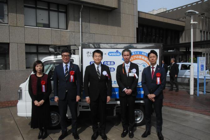 「さいたま市移動販売による地域づくりモデル事業」の実施に先立ち、令和7年3月19日にさいたま市役所にて事業開始式を開催し、さいたま市長 清水 勇人をはじめ、さいたま市議会 議長 帆足 和之氏、さいたま市議会 副議長 西山 幸代氏、ウエルシア薬局株式会社 執行役員 首都圏支社長 江平 知広氏、コカ・コーラボトラーズジャパン株式会社 広域営業本部 広域CS第一営業統括部 統括部長 坂 直樹氏にご出席いただきました。