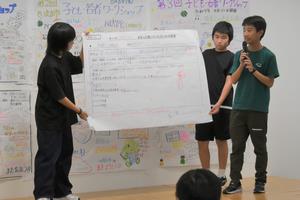 会場は、開始前から音楽がかかっていたり、テーブルにはポップなクロスが敷いてあったりと、とても明るい雰囲気で、子どもたちも活発に意見を出し合っていました。