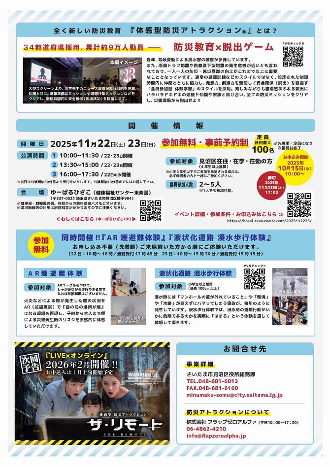 あの「体感型防災アトラクション®」が今度は「風水害編」で見沼区へ帰ってきます!
