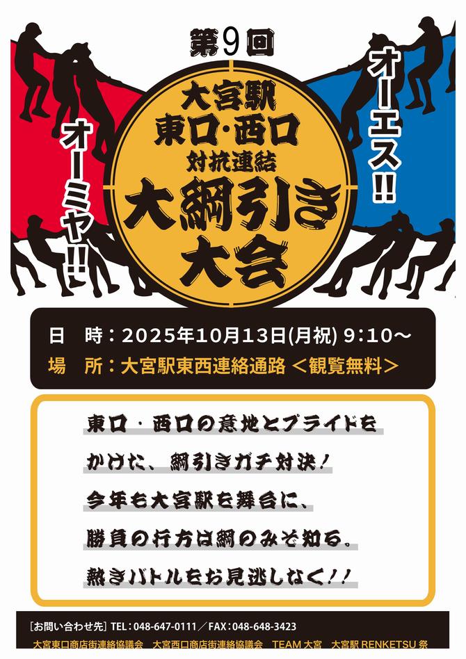 オープニングイベントとして、大宮駅東口と西口の因縁の戦い「大宮駅東口・西口対抗連結大綱引き大会」が開催されます!