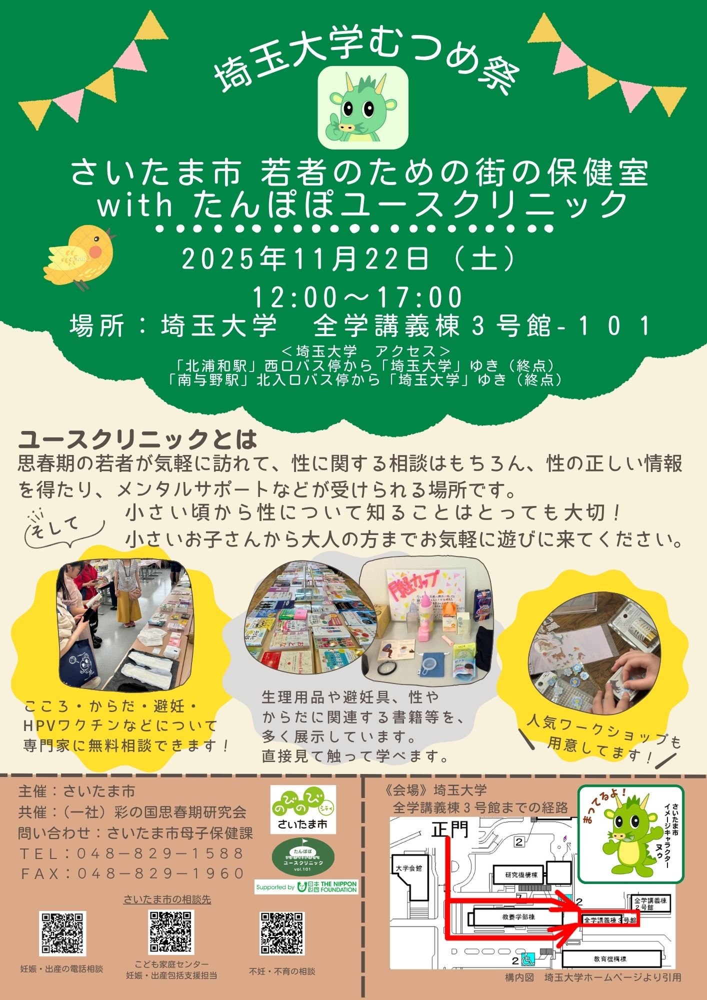 このたび、埼玉大学の学園祭(むつめ祭)にて、ユースクリニック を開催します!