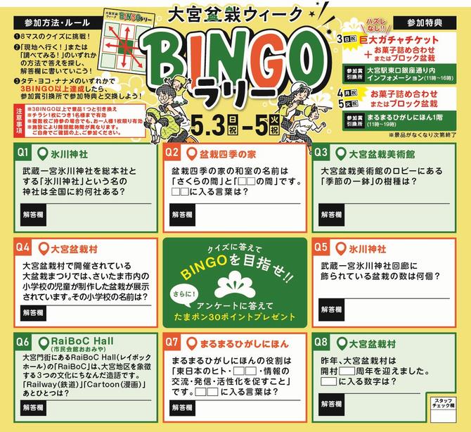 5月3日(日祝) 巨大ガチャチケット + お菓子詰め合わせ or ブロック盆栽 (特典引換所:大宮駅東口銀座通り内 引換ブース)