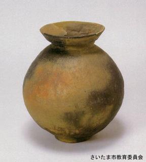 | 概要 | 別所遺跡出土。古墳時代前期五領式土器。器高27.9センチメートル、口径15.0センチメートル。指定当時は弥生式土器とされたが、古墳時代の土師器である。 |