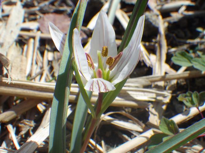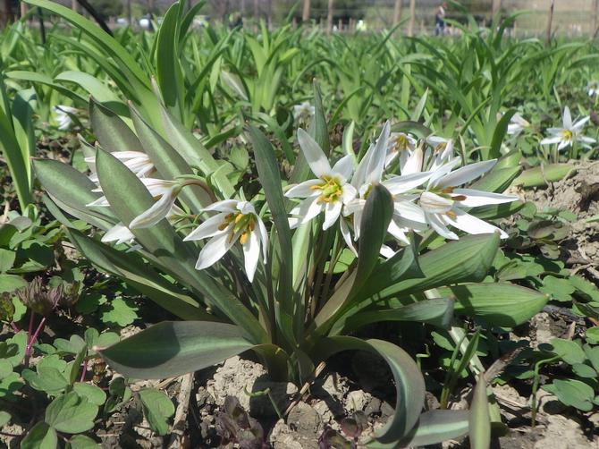 アマナやヒロハノアマナは、見ごろが始まり、白い花が群れになって開花している様子が見られます。