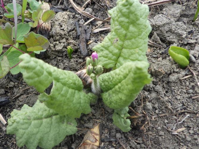 サクラソウは芽吹きが成長して、葉が開き始めるものも見られるようになってきました。