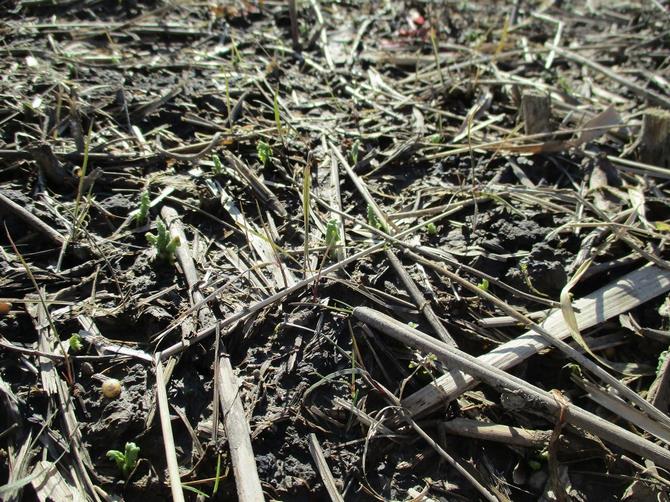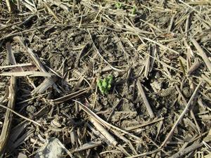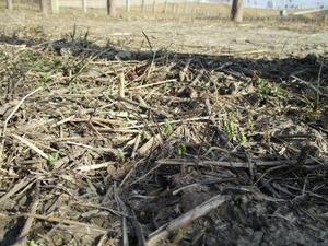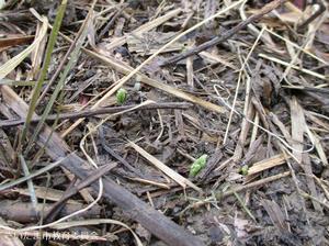 周囲への延焼防止のためにあらかじめ枯草を刈り払っていた場所では、一部でサクラソウの芽吹きが見られました。