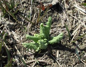 このサクラソウの芽が燃えてしまわないよう、付近の枯草は芽から離しておきました。