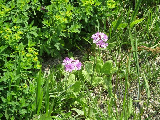 ノウルシの生育が旺盛ですが、サクラソウの蕾や花もだいぶ目立つようになってきました。
