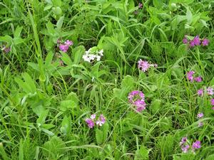 サクラソウはまだ咲いていますが、スイバ等の周りの他の植物が徐々に成長し、サクラソウが隠れてきています。