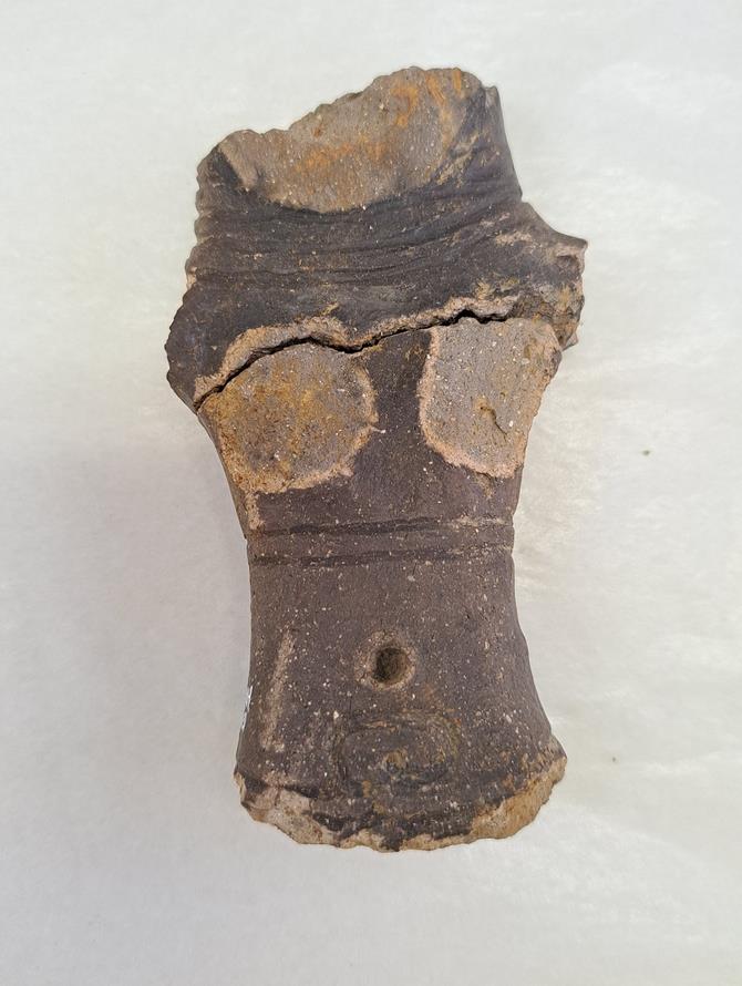 乳房部分は剥落していますが、刺突で表現したおへそは確認できます。