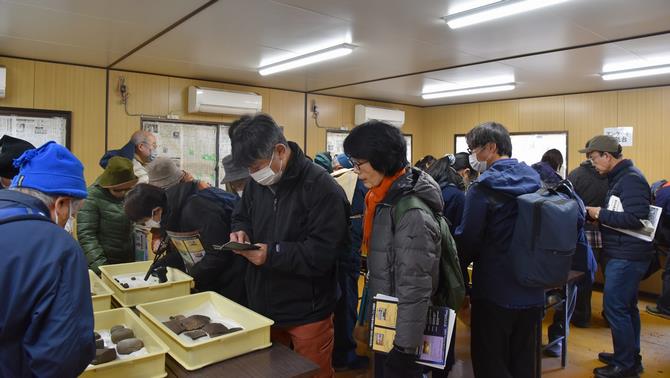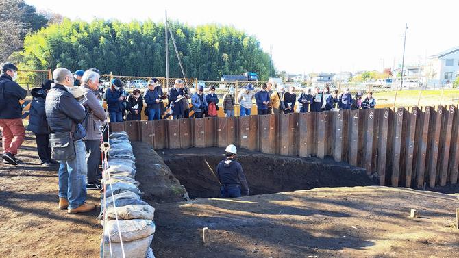 毎年、真福寺貝塚では、最新の発掘調査状況や出土品を、現地で見学していただく機会を設けております。