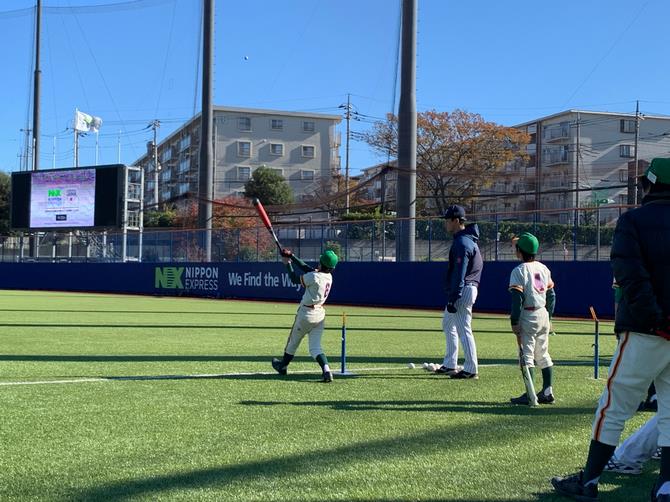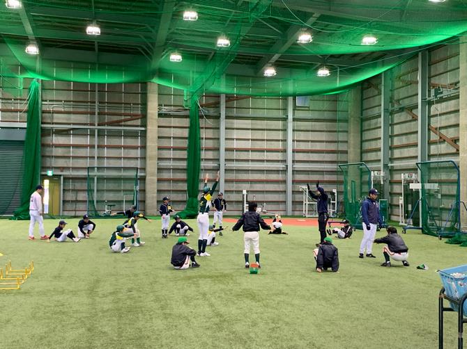 当日は5グループに分かれて、バッティング練習・守備練習・キャッチボール・屋内トレーニング等を実施し、参加者は楽しみながら熱心に指導を受けていました。