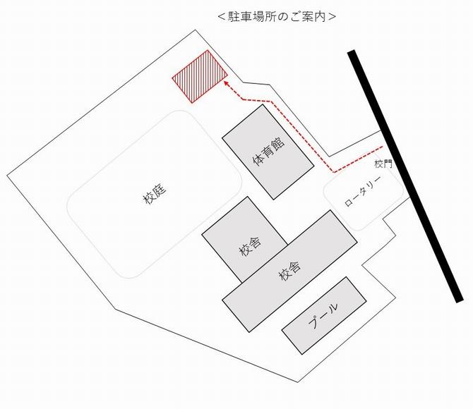 ・自動車でお越しの際は、校庭の東側に駐車してください。ロータリーへの駐車はご遠慮ください。