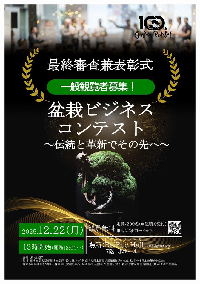 さいたま市では、世界に誇る「大宮盆栽」の文化を100年後の未来へ継承するため、次世代に向けた新たな価値創出を目指すビジネスプランを募集しました。