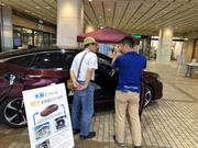 燃料電池自動車で発電した電気を各ブースの電源として活用する「燃料電池自動車で発電!」を実演しました。燃料電池自動車(FCV)は、燃料電池で水素と酸素の化学反応によって発電したエネルギーを使ってモーターを回して走る自動車です。今回は発電を活用してモニターディスプレイにPR動画映写を実施しました。