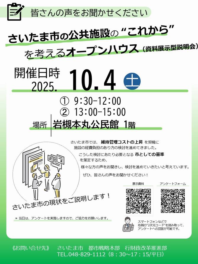 さいたま市の公共施設の “これから” を考える オープンハウス(資料展示型説明会)を実施します!