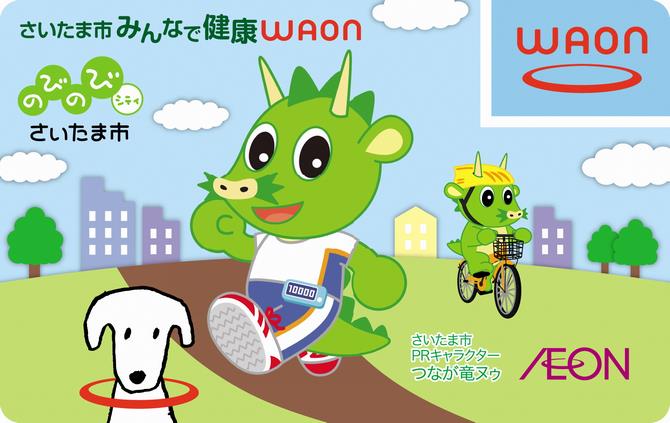 さいたま市とイオン株式会社様との包括連携協定締結を記念して、平成28年にご当地WAON「さいたま市みんなで健康WAON」が発行されました。このカードの利用による収益の一部をさいたま市に寄附していただき、健康増進とスポーツ振興に活用しています。