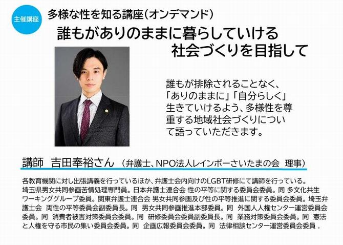 吉田 奉裕さん (弁護士、NPO法人レインボーさいたまの会 理事) |