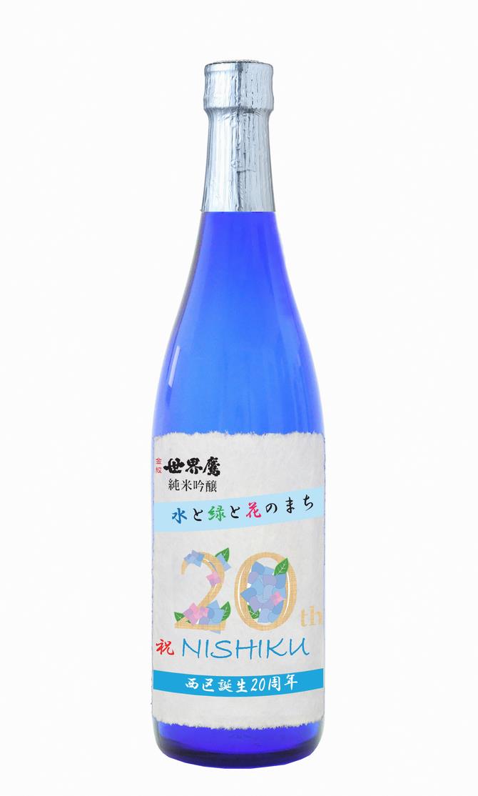 西区が誕生20周年を迎えたことを記念し、区内の酒蔵「小山本家酒造」とのコラボラベル記念酒が販売中です。