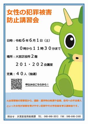 女性特有の犯罪被害を防止するため、防犯意識の高揚と差し迫った被害に対応する知識・技能の普及を目的に、警察署と連携して講習会を開催し、大宮区の「安全・安心なまちづくり」を推進します。