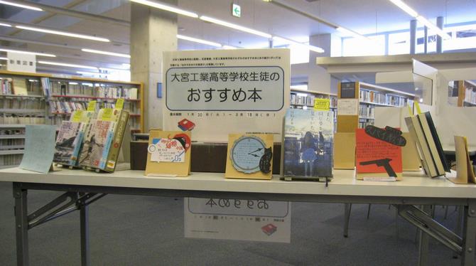 北図書館では、大宮工業高等学校生徒がおすすめする本とポップを展示します。
