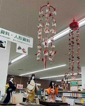 子どもへの健やかな成長の願いを込めて作られる、彩り鮮やかな「つるし雛」を図書館内に飾ります。