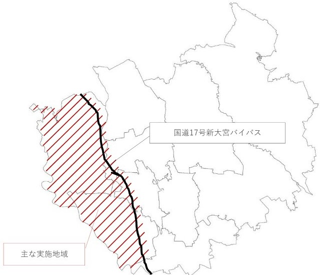 西区・大宮区・中央区・桜区のうち、主に国道17号新大宮バイパスと荒川の間を中心とした地域