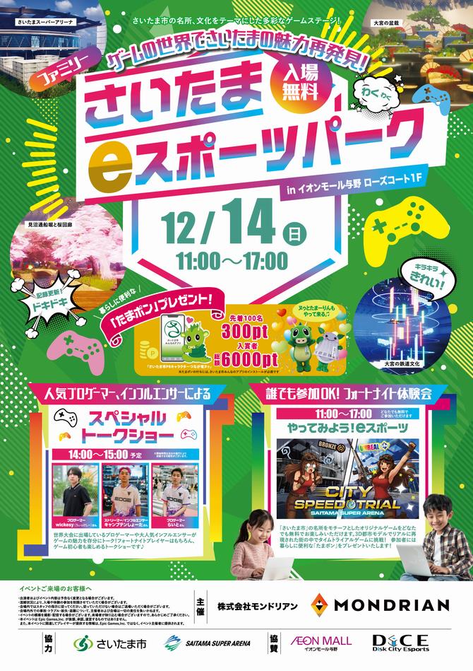 そのリリース記念イベントとして、「さいたまeスポーツパーク」が12月14日(日曜日)にイオンモール与野1Fローズコートで開催されます。