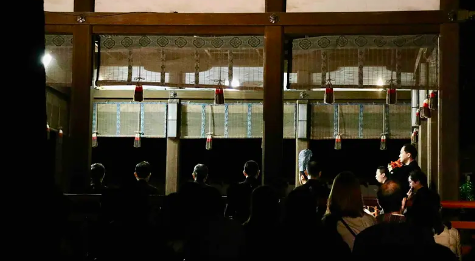 初夏の夕べ、篝火が焚かれた境内は幽玄の世界そのものです。ぜひ最高のロケーションと一流演者によって創り出される伝統文化の真髄をお楽しみください。