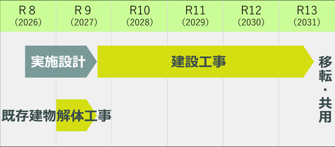 令和6(2024)年11月に基本設計に着手し、パブリック・コメントにおいて頂いた御意見等を踏まえ、令和8(2026)年4月に基本設計が完成しました。