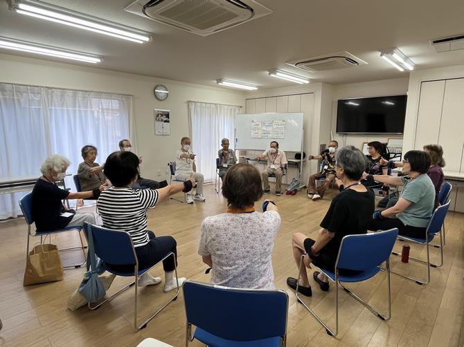 仲間と一緒に行うと、励みになって体操を続けることができます。