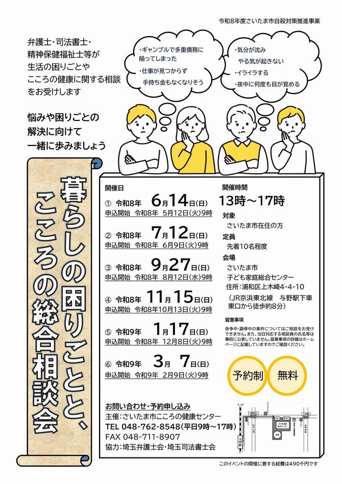 埼玉県でも「暮らしとこころの総合相談会」を実施しております。