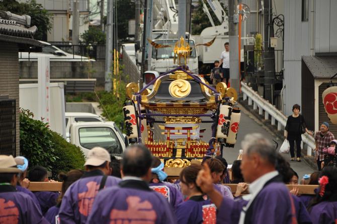上町、仲町、下町、上峰の4地区の御輿が、街を練り歩きました。
