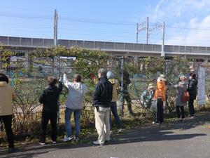 12月12日に中央区ばらサポーターの皆さんが区役所駐車場西側フェンスのつるバラの剪定作業を行ってくれました。