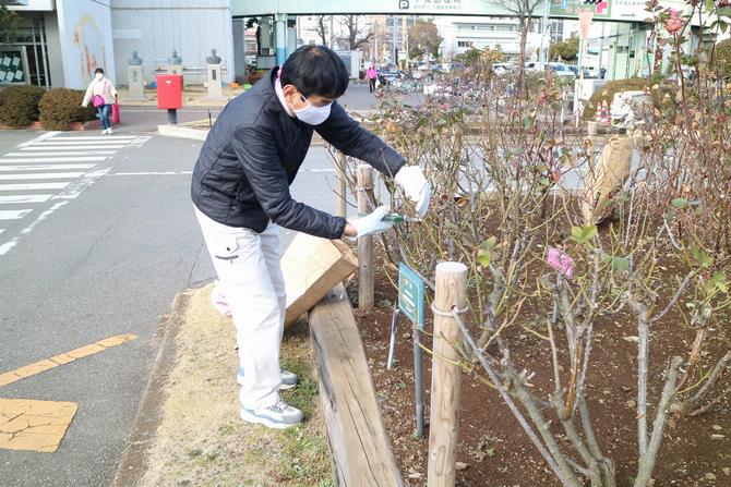 1月29日と2月1日の二日間にわたり、西村区長、近藤副区長など幹部職員が区役所周辺のバラの剪定を行いました。