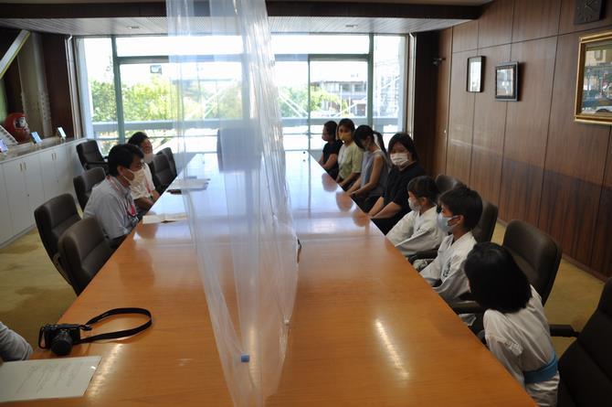 ビニール越しの報告となってしまいましたが、区長は3人に空手を始めたきっかけや空手をやっていて良かったことなど、たくさんの質問をしていました。