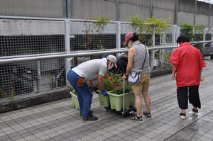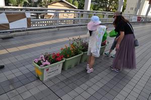 このように自治会や子ども会の方が暑い中毎日水やりをしてくれたおかげで、小さかった花苗も大きく育ち、デッキを歩く人たちの目を楽しませてくれています。