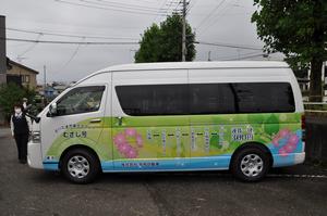 「むさし号」は10人乗りのワンボックス車で、車体の右側に中央区の花「バラ」が、左側に桜区の花「サクラソウ」がデザインされています。